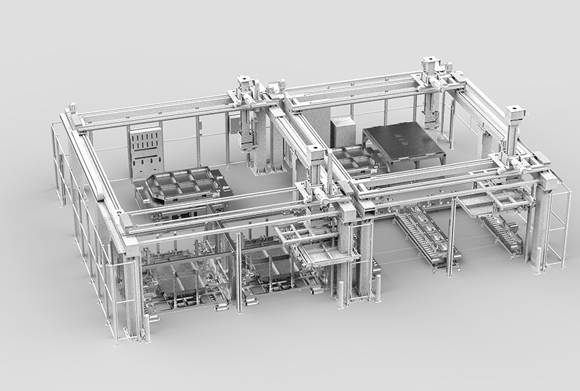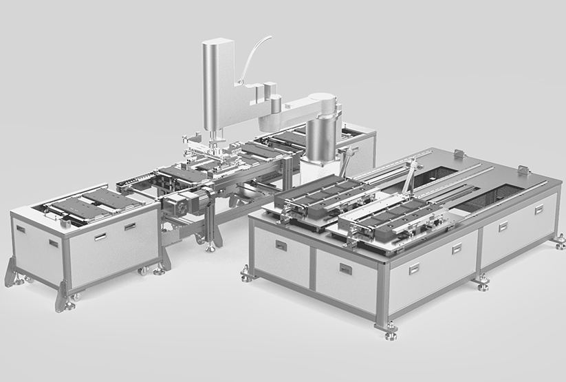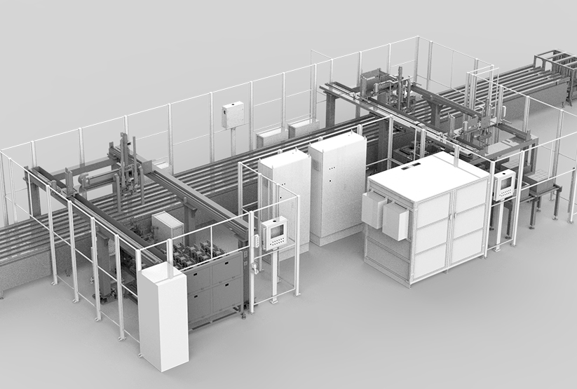 該自動線旨在實現(xiàn)模組自動智能化裝配及測試,包括組件清洗、組件涂膠、組件上線、電堆堆疊、側板焊接、BUSBAR焊接、模組打碼、絕緣測試、EOL測試及產(chǎn)線MES等功能。